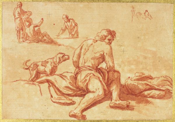 Curator: Observing Mantegna's "Three Studies of Elongated Figures," created circa 1455, now residing in the British Museum, what immediately captures your attention? Editor: Honestly? A sense of tragic beauty, and maybe even isolation? The figures, rendered in ink and charcoal, look like they're floating, detached. There is something both ethereal and corporeal at play here. It almost reads like a macabre dance of mortality, or out-of-body experience. Curator: The elongation, a Mannerist tendency avant la lettre, certainly contributes to this. But let’s focus on the materiality. Mantegna's sharp, controlled strokes meticulously delineate musculature, exploring depth and perspective with masterful chiaroscuro. This heightened naturalism conveys tangible volume and texture within each figure, despite being a sketch. Editor: I can see it; the academic dedication is obvious but it still breathes! The roughness of the charcoal lines prevents it from becoming too clinical or detached from emotion. It lends each form an incredible tenderness, though maybe tenderness isn’t the right word… intimacy perhaps? There’s this immediate sense of exposure, not necessarily sexual but almost unbearably, devastatingly human. Curator: Note also the composition – these studies appear unbound. Each floats independently upon the surface of the substrate. Mantegna’s arrangement presents an anatomical triptych, deconstructed. Editor: Which elevates them from mere studies to symbolic representations. Maybe they depict three stages of life or death? Or perhaps Mantegna’s showing us different perspectives on the same human form – facets of a single soul. The mystery amplifies their symbolic heft, in my opinion. It reminds me of death masks... sort of... except in drawing format, with a breath of warmth. Curator: Indeed. Mantegna transcends simple anatomical representation, creating potent allegories of the human condition that resonate across the centuries, thanks to the inherent expressive quality within those minimalist linework. Editor: Absolutely, and with that ambiguity—everyone can experience this and find a common ground with each other. We’ve taken a look at mortality, vulnerability, exposure—ultimately we face death by ourselves, but in observing, creating and dissecting this art, maybe it does not have to be that solitary of an experience, thank you for walking me through that thought.