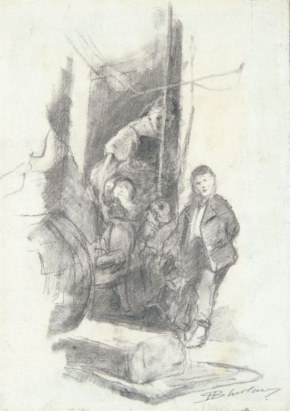 Edwin Austin Abbey created this pen and ink drawing, "In a Tavern, Illustration for "Phillada Flouts Me", in the late 19th or early 20th century. Abbey, who was an American artist, spent much of his career in England where he gained recognition for his illustrations of Shakespearean and other literary works. This particular piece visualizes a scene of leisure and social interaction, which reflects the period's fascination with both historical narratives and theatricality. The setting is a tavern, a public space where social hierarchies were both reinforced and sometimes playfully subverted. Consider the attire of the figures; it suggests a specific class and gender dynamic. Men gather, while a woman occupies a place at the table, possibly hinting at the complexities of female roles in public life. Abbey’s choice to illustrate scenes from literature highlights the cultural importance of storytelling, and the ways in which stories can inform and shape our understanding of ourselves and society. It invites us to think about our own places in these ever-evolving narratives.