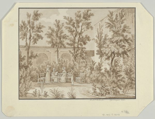 This photograph of a coconut plantation in Sumatra was taken by J.W. Meyster, as part of a book documenting the activities of the General Association of Rubber Planters. While photography is often considered a documentary medium, here it takes on a promotional role, celebrating the scale and order of the plantation system. Look closely and you can see a small railway used to transport the coconuts. The very organization of this landscape speaks to industrial processes. The repetitive rows of trees, the efficient transport system, all point to a capitalist enterprise aimed at maximizing production. The photograph also invites us to consider the human labor involved in creating this scene, labor that remains invisible. By focusing on the material realities of this image – the photographic paper itself, the ordered rows of coconut trees, and the implied network of extraction and distribution – we can begin to understand the complex relationship between art, industry, and colonial exploitation.