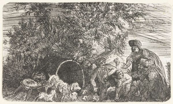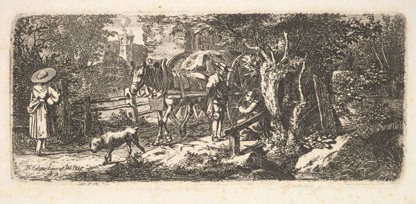 Claude Lorrain created this print, "The Ford," using etching, a process that demands both physical labor and chemical expertise. To make this print, Lorrain would have covered a copper plate with wax, then drawn his design, exposing the metal. Immersing the plate in acid would bite away the lines, which when inked and pressed, transferred the composition to paper. Look closely, and you’ll see the subtle variations in line weight, achieved by varying the immersion time. Lorrain used this etching technique to create and disseminate multiple copies of his compositions. In his time, this was an innovative way of expanding his reach, in a way akin to industrial production. Rather than painting an original destined for a single collector, he made his artistry accessible to a wider audience, in a way that democratized art, connecting his artistic practice to emerging modes of production and consumption. This simple print bridges the gap between traditional craftsmanship and the burgeoning possibilities of mass communication.
