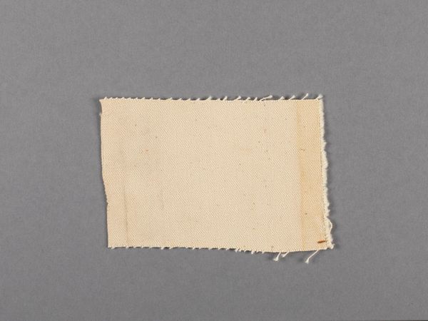 Curator: Up next is Barnett Newman’s "Canvas fragment," currently held in the Harvard Art Museums collection. Editor: It’s strangely… intimate. Raw canvas, fraying at the edges. I’m immediately drawn to the history of the material itself. Curator: Absolutely. For Newman, the canvas functioned as more than just a surface. It was a field for profound spiritual and existential statements. Even a fragment carries that weight. Editor: I wonder about its life before this. What larger work did it come from? What colors, what gestures did it once support? The weave itself tells a story of industrial processes and human labor. Curator: Consider how this remnant invites contemplation on the creative act, and the symbolic weight the artist imbued in such rudimentary material. Is it incomplete, or a complete thought in itself? Editor: It makes me question what we value in art. Is it the finished product, or the evidence of its making, the labor, and the inherent qualities of the materials themselves? Curator: I see a hint of both. This fragment retains Newman's artistic intention, but it also reveals the materiality that gives form to that intention. Editor: A humble piece, yet it sparks so many questions about the art-making process and what constitutes value.