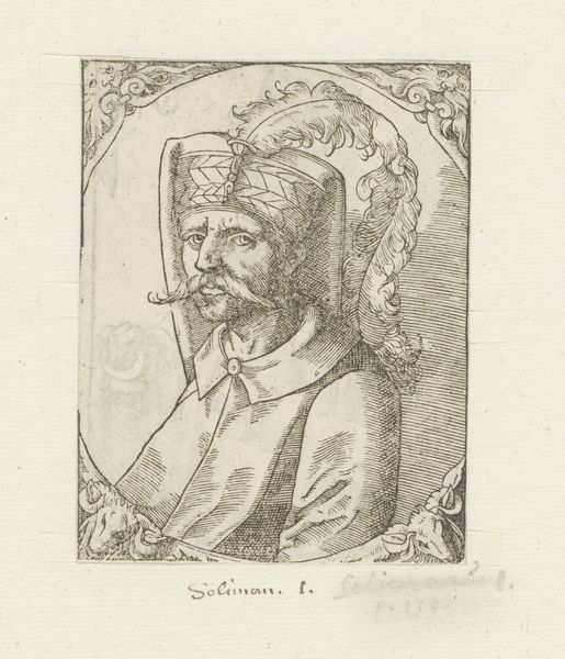Editor: So, this engraving, "Portret van Dawit II, keizer van Abessinië," from between 1549 and 1575... it has this serious, almost stern quality to it, due to the detail in the engraved lines. The cross seems a focal point. What strikes you most about this piece? Curator: Immediately, I’m drawn to the labor involved. Engraving demands a specific skillset, a deep understanding of materials - the metal plate, the tools used to incise it, the paper upon which it's printed. Consider the social context of printmaking in this era: it was a burgeoning industry, a means of disseminating images and ideas, but also reliant on workshops, apprenticeships, and patronage. What kind of value do you think this labor added? Editor: I guess it made the image more widely accessible, less precious than a unique painting. More people could own it, so its message could spread wider. Curator: Precisely. And the choice of subject – an Ethiopian emperor – points to early global trade and exchange. Engravings like this were commodities. They weren't simply artistic creations; they were products of complex economic and social networks. Notice how the detail emphasizes wealth. Can you expand on this idea of production in the era? Editor: It's amazing to think about the economic systems needed for something like this to exist. Someone had to mine the metal, manufacture the tools, and the printing itself suggests literacy and a market for images. Curator: Exactly! Think about how the means of production shaped the very message it conveys. The subject matter is filtered through layers of labour, trade, and cultural exchange. Editor: I hadn't really thought of it that way before. Focusing on materials and labour makes the artwork feel so much more connected to the world around it.
