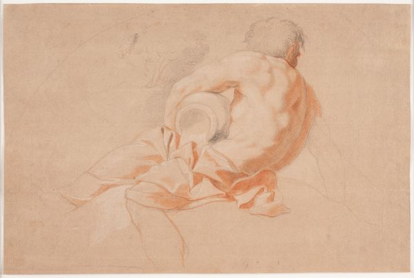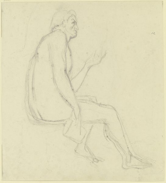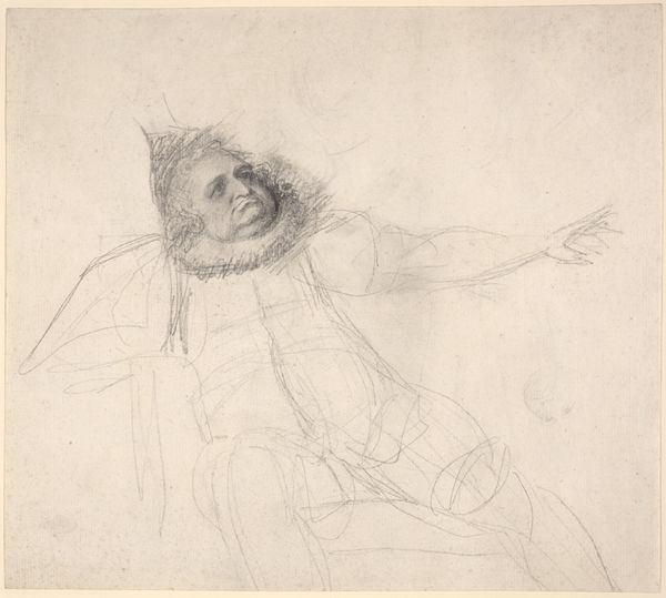 Editor: Here we have Alexandre Cabanel's study, "Woman Reaching Over a Wall," created around 1878 using pencil and chalk on paper. The sketch-like quality gives it a feeling of immediacy and vulnerability. How do you interpret this work, given its purpose as a study for a larger painting on the life of Saint Louis? Curator: The outstretched hand is really the key for me. It immediately makes me consider the weight and implication behind gestures. Note how the study captures her emotional state, seemingly offering something or perhaps pleading. How does it sit within the narrative of Saint Louis’ life – what cultural memory of a queen is Cabanel building upon? Editor: I hadn't thought of the narrative implications! The gesture definitely reads as both an offering and a plea simultaneously. Curator: Exactly. What historical associations might that carry? Is it merely assistance being given? It prompts you to consider similar images that you might know... perhaps someone like Mary Magdalene? Or someone seeking aid herself? Do those archetypes impact your reading of it at all? Editor: Definitely. I'm starting to see those familiar gestures playing out here, but framed in the context of French royalty. So is it meant to evoke both piety *and* power? Curator: Precisely! Cabanel likely selected specific details, consciously or unconsciously, to connect with collective memories and ideals surrounding women of the time, their expected roles and power. Remember this was only a study but that pose would be recognizable within the history of powerful supplication and royal imagery, informing its intended impact on the larger painting. Editor: It's fascinating how much symbolism is packed into a simple sketch. It’s shifted how I look at studies – they are not only preparation, but an opportunity to harness cultural meanings. Curator: Absolutely. A work like this can truly reveal how gestures can speak volumes across different times and beliefs.