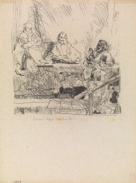 James Ensor created this etching titled ‘Gluttony’ using a variety of techniques including drypoint and hand coloring. The scene is dominated by a grotesquely obese figure seated at a table, indulging in an excess of food, with viscous fluids dripping. This central figure is flanked by other distorted characters. Ensor disrupts traditional notions of beauty and decorum by employing a visual language of exaggeration and distortion, a hallmark of expressionism. The artist challenges the viewer to confront uncomfortable truths about human behavior. He uses color and line to heighten the sense of unease and moral decay, as seen in the lurid tones and the chaotic composition. The interplay of textures, from the coarse lines of the etching to the delicate washes of color, creates a visual tension that mirrors the thematic concerns of the work. This speaks to a broader critique of societal values, inviting us to question what we consider acceptable or excessive.