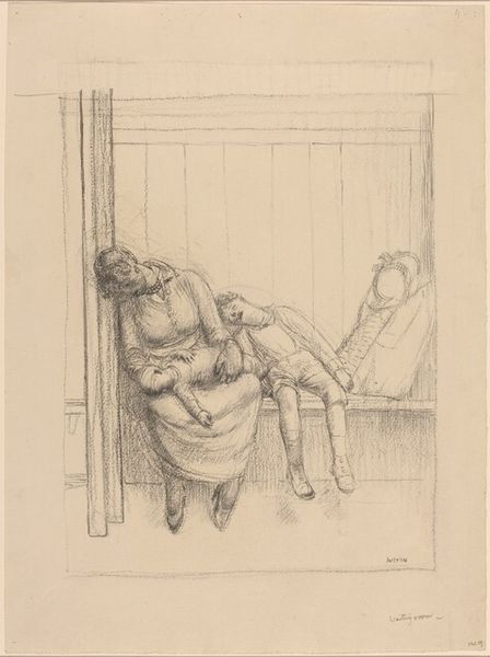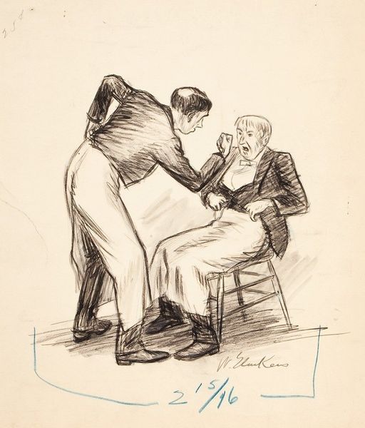 Editor: Here we have Heinrich Krabbé's "Visitor at a Deathbed," a pen and pencil drawing, made before 1898. The scene feels intimate, stark even. It's clearly figuration. What historical context informs this drawing? Curator: Krabbé made this before 1898, amidst significant social upheaval and growing awareness of health disparities. Look closely—what power dynamics do you observe within this genre painting? Is it a purely sympathetic portrayal? Editor: Well, there is tenderness, I suppose. But now that you mention power, the visitor *is* standing, in darker clothing, looking down on the other figure lying in bed. The visitor also seems to be the more composed of the two characters depicted in the artwork. Curator: Exactly. Consider the social position of those providing care during this era. The figure standing, attending to the dying man, occupies a particular societal role, one that holds inherent power—be it familial, medical, or even moral. How might Krabbé be commenting on these established structures, the act of visiting as an assertion of dominance, a visual metaphor for control over mortality itself? Editor: So, the "visitor" may symbolize societal imbalances present even during these most intimate, vulnerable moments? I hadn’t considered it from that perspective. Curator: Precisely. And think about the role of illness at the time—often shrouded in shame and stigma, particularly among marginalized communities. Editor: That's fascinating. I’ll certainly look at this work differently now, seeing past the immediate somberness and recognizing its potential sociopolitical implications. Thanks! Curator: Indeed! Engaging with historical context helps unlock deeper meaning within the composition and brushstrokes. We’re able to think beyond what is simply rendered.
