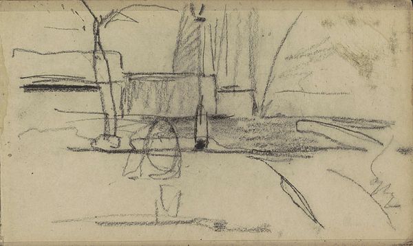 This is Egon Schiele's "Eisenbahn", a drawing with graphite and coloured pencil on paper. The artwork presents a dark, abstracted train with thick, expressive lines, giving it a primitive yet powerful quality. The composition, with its stark contrasts, creates a sense of unease. Schiele employs a crude style, disrupting traditional modes of representation to tap into raw, primal emotions. Note how he flattens the perspective, reducing depth to emphasize surface and pattern. This distortion can be understood through the lens of semiotics, where the train transcends its function as mere transportation, becoming instead a symbol laden with anxiety and dread. The train bears resemblance to a swastika. Through this symbol, Schiele destabilizes conventional meanings and confronts viewers with uncomfortable questions about identity and power. It suggests the looming shadow of political ideology. Ultimately, Schiele's formal choices—his use of line, shape, and symbolic form—reflect a deeper engagement with the psychological and cultural anxieties of his time.