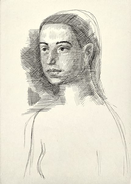 Editor: Here we have Hryhorii Havrylenko's "Female Image," a pencil drawing from 1966. It’s such a delicate portrait, almost ephemeral. The subject’s gaze is averted, which creates a sense of mystery. What do you see in this piece? Curator: I see a fascinating interplay between vulnerability and self-possession, especially when considering its historical context. 1966 was a time of burgeoning feminist consciousness globally, even if suppressed in certain regions. Does the averted gaze speak to societal constraints placed upon women, forcing a retreat from direct engagement? Or does it suggest an inner strength, a refusal to be defined by the viewer's gaze? Editor: That's a perspective I hadn't considered. I was focused on the personal aspect, but thinking about the broader social context changes everything. Are you suggesting the portrait might be a subtle commentary on the female experience at the time? Curator: It's plausible. The seeming simplicity of the "amateur sketch" aesthetic could also be a deliberate choice. Consider the power dynamics at play when women artists adopted this style. Were they reclaiming a sense of authenticity outside patriarchal art historical standards? What does it mean to reclaim your identity and form in a society so fraught with injustice? It's critical that we use a gendered lens. Editor: That makes me think about how the medium itself—pencil, often seen as less formal than paint—could contribute to that feeling of accessibility, but also a kind of quiet rebellion. Curator: Exactly. And what does it say to you that we are calling the artwork "Female Image," absent a more individual and individualized name? It could either depersonalize the sitter, robbing her of agency, or, conversely, assert the commonality of the feminine plight. It provokes more questions than it answers, wouldn't you say? Editor: Definitely. I came in seeing a simple portrait, but now I recognize layers of social and political commentary that were invisible to me before. Thank you for sharing your perspective! Curator: My pleasure. It is through these dialogues that we enrich our understanding and appreciate the true depth of artworks such as this.