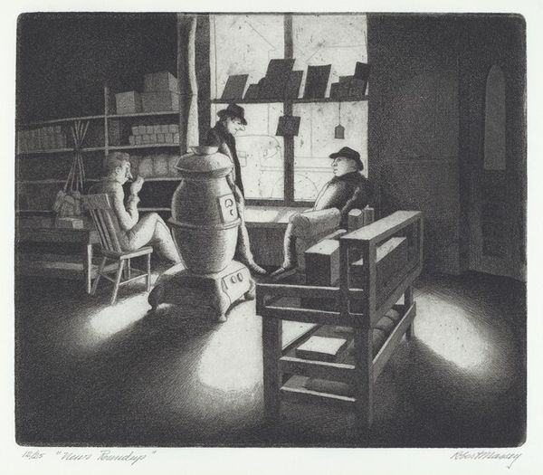 Philippus Anthonius Alexander Kanne created this artwork, "Interior with a Man Reading by Candlelight," using brush and gray ink. It presents a scene that is both intimate and reflective of the 19th century's fascination with domesticity and the individual's inner life. The image encapsulates the era's gendered expectations, positioning men in intellectual pursuits within the private sphere. This period often saw an increase in literacy and a valuing of personal reflection, yet access to education and leisure was largely determined by class and gender. The solitary male figure, absorbed in his reading, speaks to the privilege and isolation inherent in these societal structures. Kanne's choice to depict this quiet moment invites us to consider the contrasts within the scene: the warmth of the candlelight against the cool shadows, the active mind within a still body, and the silent narrative unfolding in the pages of the book. It prompts a consideration of the personal and societal narratives interwoven in such a seemingly simple setting.