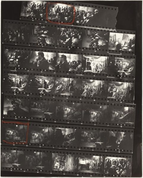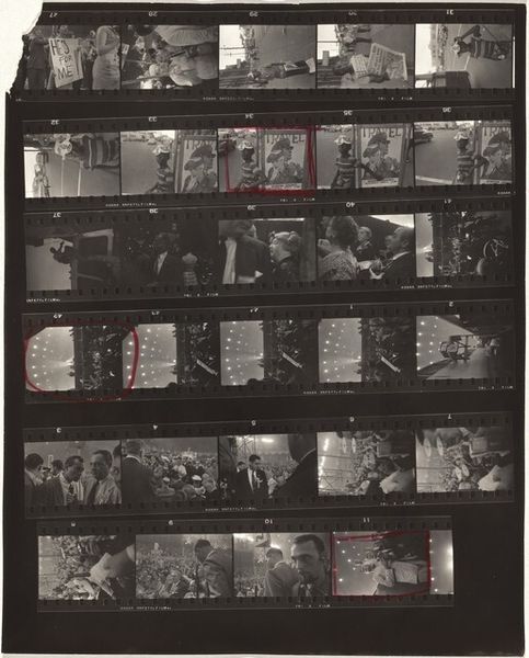 This is Robert Frank’s "J.L.A. V," a photo contact sheet, and what strikes me is the way he approaches photography like a painter approaches a canvas – it's all about the process. Frank isn’t just capturing a moment; he’s exploring a sequence, a narrative. The materiality here is the grain, the grit of the film, the way light and shadow play across the surface of each frame. Look at frame 24, the way the figures blur, almost dissolving into abstraction. It’s not about clarity; it’s about feeling. The physicality of the medium is so present, you can almost smell the darkroom chemicals. It’s raw and immediate. Frank reminds me a little of Garry Winogrand – both were street photographers who were not afraid to mess with the rules, to embrace the messy, the unpredictable. It’s a conversation that continues to evolve, shape-shifting with each new voice. What does it say to you?