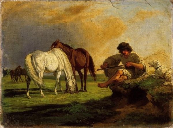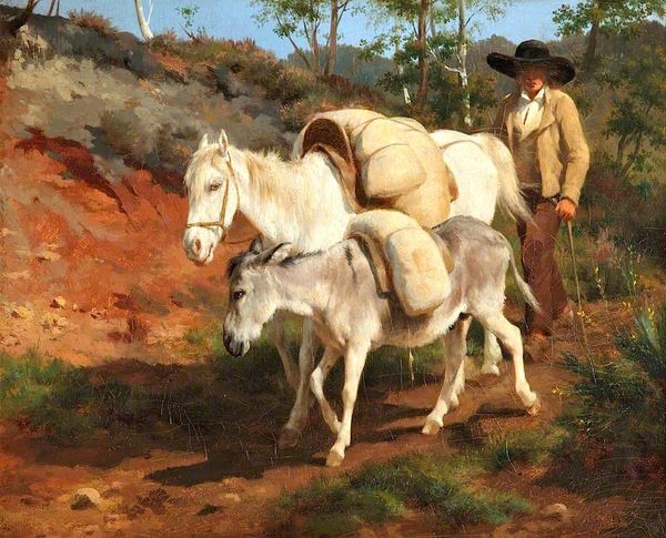 Károly Lotz made "Harvest" using oil paints, a traditional material for fine art, but here employed to depict a scene of rural labor. The thick application of paint mimics the density of the haystacks, their surfaces built up with visible strokes. Lotz uses color to suggest the weight and texture of the harvest, from the golden hues of the ripe grain to the deep browns of the horses' coats. The artist’s technique, a blend of observation and impressionistic brushwork, emphasizes the physical nature of agricultural work. In the 19th century, paintings like this played a role in romanticizing rural life, even as industrialization transformed society. Lotz, who came from a family of artists, represents a bridge between traditional artistic practices and the changing social landscape. The painting invites us to reflect on the labor involved in producing our food, and how that work is often abstracted from our daily lives.