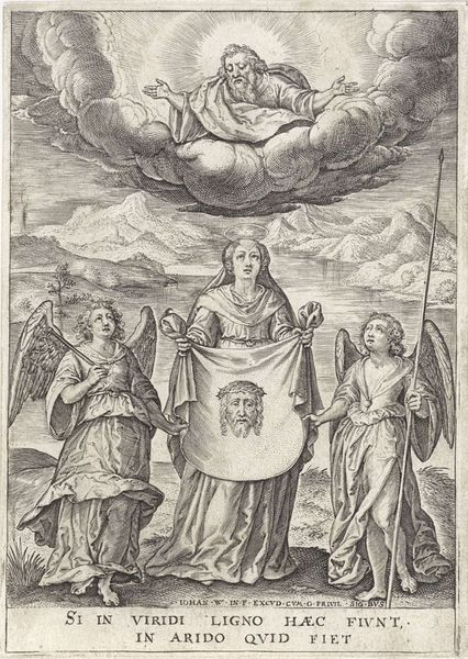 This engraving by Karel van Mallery presents us with an angel displaying the Sudarium of Saint Veronica. The cloth bears the face of Christ, crowned with thorns, an iconic symbol of his suffering. This image is a potent reminder of the imprints left by significant events and figures. The Sudarium itself becomes a 'memory-image,' echoing similar relics across cultures—veils, shrouds, and cloths believed to capture the essence of a sacred person or moment. Take, for instance, the Shroud of Turin or even the imprint of Buddha’s shadow. The face of Christ, imprinted on the cloth, mirrors the psychological phenomenon of pareidolia, where our minds seek familiar patterns in random stimuli. Over time, this image has undergone countless transformations, each reflecting the cultural and emotional landscape of its era. Each new depiction further embedding the pathos formula of suffering and divinity into our collective consciousness.