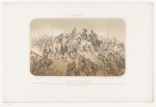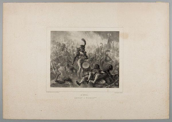This lithograph, by Auguste Raffet, captures a moment of intense conflict. Note the raw emotion conveyed through the figures' gestures; specifically, the dominant image of one soldier seizing another by the throat. This motif, of grasping or restraining, appears throughout art history, signifying power, control, or even desperation. Think of the wrestling matches of ancient Greece, where the grip determined the victor, or the religious iconography of saints holding down demons. But here, the act carries a primal charge. It speaks to the immediate, life-or-death struggle on the battlefield. We are reminded of the inherent violence in man, a psychological undercurrent that surfaces during times of war. This image has a cyclical resonance, an echo of past conflicts. It has an emotional power, engaging viewers on a deep, almost subconscious level. Through Raffet’s eyes, we witness not just a battle, but a timeless symbol of human aggression.