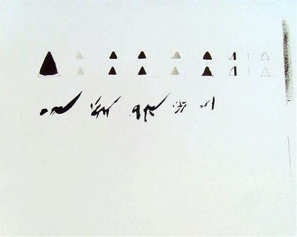 Editor: This is Alevtyna Kakhidze's "Untitled," created in 2022 using ink on paper. The piece features bold lettering with some quirky, hand-drawn illustrations. I am immediately drawn to its graphic simplicity. How do you interpret this work from a formal perspective? Curator: Considering its formal qualities, one must recognize how Kakhidze utilizes the stark contrast of black ink against the white paper. This enhances the legibility and impact of the text. What structural relationships do you observe between the different lines of text? Editor: I notice the text varies in size and style, almost like different voices contributing to a single message. The geometric forms and playful lettering seem to contrast each other. Curator: Precisely. Note also how the varying line weights and the strategic placement of the small illustrations contribute to a visual rhythm. Semiotically, the choice of typography becomes critical. How does the handwritten font affect its reception compared to, say, a standard typeface? Editor: It gives it a personal and informal touch, as if it's a handwritten note, making the message feel more intimate. I wonder what exactly that message is. Curator: Let us concentrate on the intrinsic formal organization. Consider the composition itself as the primary communicator of meaning. The imperfections inherent in the hand-drawn elements suggest the presence of the artist and their choices. What might these forms tell us beyond their semantic content? Editor: I see now. Focusing on form over explicit meaning makes me appreciate the subtle details, the intentional imperfections in the lettering. Thank you. Curator: Indeed. It underscores the capacity of visual elements, absent overt narrative, to evoke feeling and intrigue.