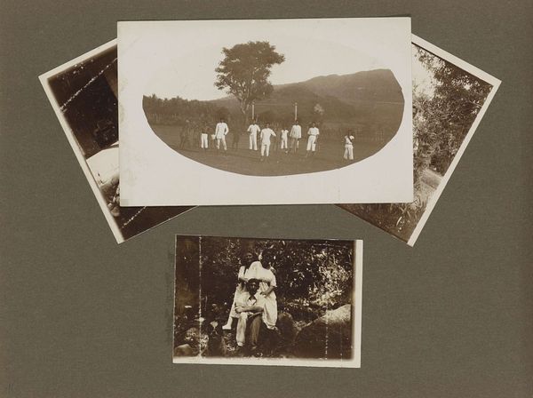 Curator: Before us, we have an intriguing gelatin silver print, circa 1900-1920, titled "Three European Managers or Owners of the Batang Serangan Company Standing in Front of a Tree.” The work is currently held in the Rijksmuseum's collection. Editor: Wow, the whole scene kind of fades into the background like an old memory. It almost feels sepia-toned even though it's black and white. These three guys in their white outfits look a little… out of place amidst all that jungle. Curator: Indeed. The photograph serves as a complex visual record of colonial history, evoking discussions on identity, power dynamics, and the impact of European enterprise in Southeast Asia. Their choice to be portrayed amidst local foliage situates them geographically but perhaps raises questions of authenticity and integration. Editor: Absolutely! They are totally giving off "civilized intruders" vibes. Those pristine white suits stand out so starkly against the wild green landscape. It is a very "we brought our order to your chaos" kind of a snapshot. Do you think that was intentional, to broadcast this image of control? Curator: It’s highly probable. Dress played a pivotal role in constructing colonial identities. Their garb broadcasts not only European identity, but social standing and an inherent claim to authority within a colonial landscape. This carefully crafted image presents them as figures of control within the very land they sought to manage. Editor: Makes you think, what did the "local employees" or laborers make of this kind of display, seeing these figures set themselves apart in their blinding white attire? Must have created some really tense social dynamics. I mean, how could you forget who's in charge when they practically glow? Curator: The photograph is undoubtedly laden with such tensions. Furthermore, we should question not just what is shown, but also what’s absent. Who is behind the camera? How is the narrative influenced through that very selective gaze? Editor: It’s powerful, really. You know, looking at it, I first felt this disconnected kind of serene, because it’s visually a nice picture… but hearing the deeper context—the real stuff— completely changes how I see it now. Layers of history are so embedded within the stillness of this one image. Curator: Precisely. By critically engaging with these narratives, we can reveal the layered histories ingrained within the aesthetic surface of works such as this photograph. Editor: Thanks! It gave me quite a lot to think about!