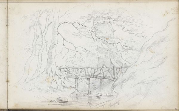 Editor: This is Willem Cornelis Rip’s, “Landschap met bomen” or "Landscape with Trees", dating from 1891 to 1892. It’s a pencil drawing, simple but captivating. What strikes me is its quiet, almost dreamlike quality. What do you see in this piece? Curator: It's a whisper of a memory, isn't it? I imagine Rip pausing on a walk, pulling out his sketchbook, and just… catching the feeling of that copse of trees. Notice how he uses a delicate hand to suggest form. Do you sense the implied texture and tone from these few lines? Editor: Definitely! The way the pencil creates shadows…it’s not hyper-realistic but evokes depth. Were landscapes common subjects at this time? Curator: Very much so. Landscape was seen as a reflection of the soul, especially amongst artists of the realist movement. They found truth in nature, unlike the romantics who sort of overdramatized it. It feels immediate, a fleeting impression he wanted to hold onto. Like capturing a half-remembered dream. Have you ever had that experience while drawing? Editor: I do! It's hard to grab those moments. What is really neat is that feeling coming through despite how minimalist it is. Curator: Exactly! It’s this wonderful little captured moment of seeing. Art isn't always about grandeur; sometimes it's in the intimacy, isn’t it? Editor: Totally! It’s taught me to look closer, even at simple sketches. Curator: For me as well, the work shows the essence of just taking the time to observe nature and just feeling connected to the peace it can provide.