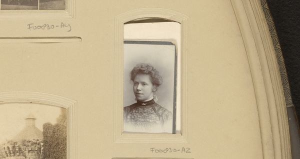 Curator: This photograph, entitled "Portret van een jonge vrouw," resides here at the Rijksmuseum and dates from between 1892 and 1913. It comes to us from the studio of Adolphe Zimmermans. Editor: There's an incredible stillness about her, like she's caught between eras. A certain fragility too, accentuated by the monochrome palette and the subtle blurring around the edges. Curator: It's interesting that you say that. Consider how portraiture, especially photography at this time, functioned as a tool for constructing identity and memory. The woman’s gaze, though directed to the side, seems intentionally averted from something specific. It suggests a degree of interiority, a private world shielded from the camera's intrusion. Editor: True, there's this wonderful tension. The photograph itself tries to fix her—a specimen pinned under glass—yet she manages to elude that capture. Her expression, reserved and thoughtful, hints at depths the photographer couldn’t, or maybe didn't want to, grasp. I feel I’m looking at a life in potentia. Curator: The muted tones actually enhance the symbolic resonance. Consider the very dark dress that almost dissolves into the shadows, drawing our attention instead to her face. In portraiture of this era, dress codes signaled social status. By subduing color, and perhaps by photographic darkroom practices, it draws our focus elsewhere. It guides us toward seeing the psychological over the societal. Editor: It is lovely. I think one cannot help projecting forward the viewer's own personal fantasies. It allows the viewer, me in any case, to engage in something other than critical analysis: namely, emotional empathy. She feels so completely alive somehow. Curator: It certainly sparks something beyond intellectual engagement. This portrait, beyond being a historical artifact, reminds us that even through static images, people carry profound stories. It speaks to the complexities inherent in human experience, whether intended by the photographer or only seen through a glass dimly today. Editor: I agree, that tension—between the formal attempt to classify and fix someone and the ultimate, ineffable unknowability of any individual—is what makes it compelling still. It invites me to sit with the image longer. To resist simply moving on.