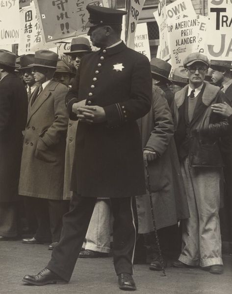 This is a black and white photograph by Robert Frank, entitled "Sign, 'Yea, Happy!,' convention--Chicago." It captures a political moment, perhaps a convention, where the pursuit of happiness takes center stage. The image creates meaning through its stark contrast and composition. The signs with slogans like "Yea, Happy!" and "Happy Chandler for President" reflect the political optimism, or perhaps naiveté, of the time. Made in the United States, this photograph invites us to consider the role of political conventions in shaping public opinion. It begs the question of whether political conventions manufacture consent or reflect it. What happens when political movements embrace such commercialized slogans, or is this a darker comment on the superficiality of political discourse? Understanding the cultural and political context is key here. Historical archives, political science research, and media studies can help us decipher the complexities of this artwork.