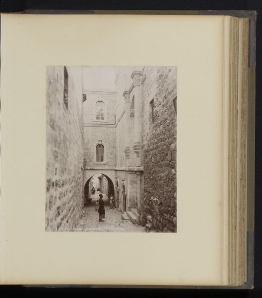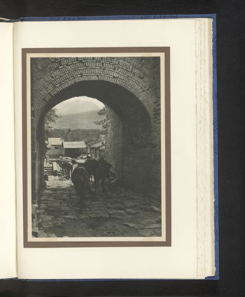 Donald Mennie created this photograph, Poort bij Juyong Guan, sometime before 1944. The sepia tones evoke a sense of antiquity, casting the stone archway in a timeless light. The composition is dominated by the imposing geometric form of the gate itself, its rough-hewn stone contrasting with the intricate carvings above. The archway acts as a frame, drawing the eye through the depth of the image, from the immediate foreground to the distant landscape. The textured surfaces of the stone, emphasized by light and shadow, create a tactile quality that speaks to the physical presence and weight of the structure. Note how Mennie uses this architectural form not just as a subject but as a lens through which to view and understand a particular place and culture. This interplay between form and content, between the geometric solidity of the arch and the subtle gradations of light, invites us to consider the photograph's meaning and artistic interpretation.