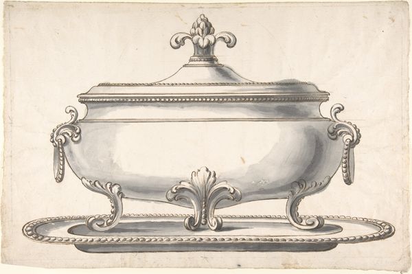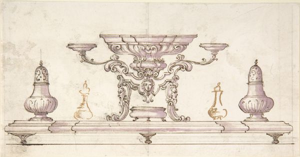 This design for a centerpiece, whose maker is currently unknown, appears to come from a time when dining was as much a theatrical event as it was a meal. The drawing offers us insight into the aesthetics of elite dining. Think of the display of power and wealth these centerpieces represented, reflecting the aspirations and social hierarchies of their time. The inclusion of female sphinxes, mythical creatures known for their wisdom and guardianship, reflects the complex ways femininity was understood. They are both powerful and decorative, embodying ideals of beauty and intellect. Imagine the conversations this centerpiece might have sparked at dinner, the way its presence shaped the atmosphere of the room. Its existence reminds us of the power of design to create meaning, to influence how we see ourselves and each other.