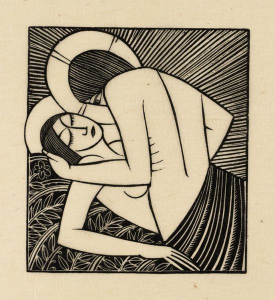 Curator: Eric Gill's wood engraving, "Girl in Bath: I," presents a study in contrasts, doesn't it? Editor: It does. It's strikingly stark, that deep black ink against the barest white lines. Almost austere, yet there's an undeniable sensuality. Curator: Yes, Gill's reduction of form to these essential lines is masterful. Note how the composition employs negative space to define the figure. Editor: She feels so enclosed, almost fetal. Is it a commentary on vulnerability, or perhaps on the self-contained nature of bathing, that private ritual? Curator: I think it captures both. The geometric precision of the lines lends a classical composure, while the subject is deeply intimate. The work asks us to reconcile those tensions. Editor: I find myself wondering, who is she? What is she thinking? Perhaps this is why Gill decided against using color. He allows our own imaginations to complete the artwork. Curator: Indeed. It's a potent reminder that true art often resides not in what is shown, but in the space it creates for us to fill. Editor: Absolutely. It’s a deceptively simple image that reveals so much.