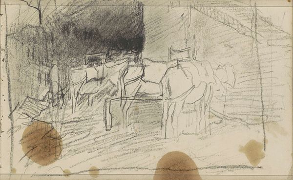 Editor: This drawing by Isaac Israels, "Figuren aan een tafel in een interieur," which translates to Figures at a Table in an Interior, sketched somewhere between 1886 and 1934, has a wonderfully intimate and casual feeling. What is your take on this particular sketch? Curator: It's interesting to consider this work through the lens of materiality. Notice the visible texture of the paper itself and the immediate marks left by the pencil. Israels isn't presenting a finished, polished product. Instead, we're given access to the artist's process, to the labor of creating the image. Think about where he sourced these materials: paper and pencil were tools, commodities even, enabling the making of this artwork. Editor: That's fascinating. It really does feel like we're looking at a page from a personal sketchbook rather than a formal portrait. Does that make it less valuable or important? Curator: Not at all. The supposed "incompleteness" is precisely where the value lies for me. It dismantles hierarchies. Instead of elevating the 'artistic genius' working divinely, we're reminded of the mundane reality: the artist making marks on a readily available surface. Furthermore, consider the setting depicted: figures around a table. What social interactions are being facilitated? What kind of labour might be involved in maintaining that space? How does Israels present that relationship through his sketching? Editor: I see what you mean. By focusing on the materials and the social scene represented, we gain a new perspective on what might otherwise seem like just a simple sketch. It feels much more grounded, like a slice of everyday life. Curator: Exactly. By understanding the artwork within its material and social contexts, it enables us to move beyond purely aesthetic judgments. Instead, it makes us contemplate labour, exchange and the construction of value. Editor: This makes me think about all the hidden labour that goes into creating any artwork, and how easily that gets overlooked. Thank you! Curator: And it is a useful exercise to consider not just "high" art, but the craft and the consumption that occurs around it. Something I will consider moving forward as well.