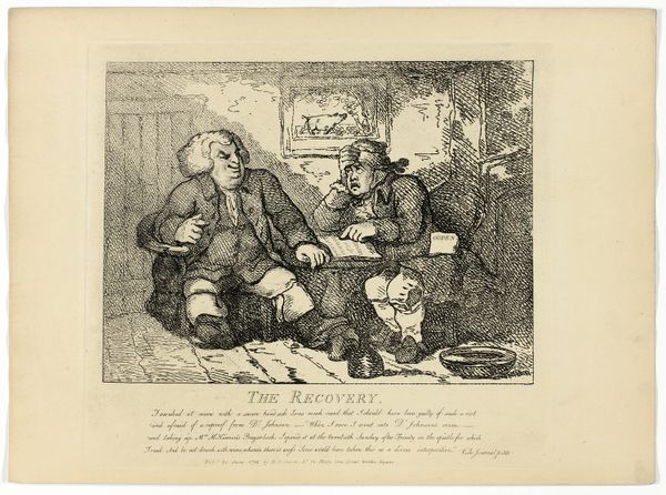 This lithograph, plate 5 from Croquis De Chasse, was created by Honoré Daumier in the 19th century. The composition is dominated by a darkly shaded interior, where two figures are seated with their dog. The monochromatic palette and textured shading create a somber mood, emphasizing the figures’ rugged appearance and the rustic setting. Daumier uses the interior space to create a semiotic interplay between shelter and exposure, highlighting the figures' dependence on nature. The interplay of light and shadow renders a sense of intimacy, almost as if we are entering a private sanctuary. The rough textures and unrefined lines of the lithograph serve to destabilize traditional notions of beauty. This artwork invites us to see beauty and significance in the everyday, inverting typical social hierarchies. By focusing on the ordinary moments of working-class life, Daumier transforms conventional aesthetic values, suggesting that true art lies in its capacity to reflect and elevate the experiences of the masses.