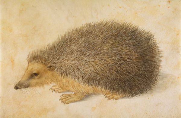 Editor: Here we have Mark Catesby’s "The Grey Fox Squirrel", a print using coloured pencil and other drawing media, likely from the 1730s or 40s. I find the combination of precise detail and slightly stiff pose so interesting. What strikes you most about this image? Curator: The focus on the squirrel itself, set against meticulously rendered flora, speaks volumes about early natural history illustration. We must ask: what materials were available, what labor was involved in sourcing those materials, and how did this affect production? The printmaking process itself facilitated the distribution of knowledge – who had access to these images, and what impact did they have on colonial perceptions of the New World's resources? Editor: So you’re focusing on how it was made and who got to see it? Curator: Exactly! Catesby wasn't just creating art; he was producing a commodity embedded in a network of scientific and economic exchange. The paper, the inks, the pigments - these materials connect to global trade routes and colonial exploitation of natural resources. How might the very act of representing this squirrel serve colonial interests? Editor: That makes me think about how the print medium democratized the image compared to a unique painting, allowing wider circulation to different social strata and thus shaping how a broader public viewed the American landscape and its fauna. Curator: Precisely. Consider how this differs from Indigenous ways of knowing and representing the natural world. Whose knowledge is privileged in this image, and at what cost? Editor: I never considered the power dynamics involved in what appears as a simple illustration of a squirrel. Thanks for illuminating the role of materiality and its social impact! Curator: Likewise. It is through the careful examination of materials and their movement, alongside a contextualized knowledge about its use, that we appreciate art's power.