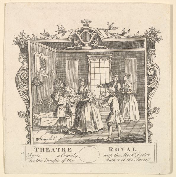 Curator: This watercolour and pencil drawing, crafted around 1813, is entitled 'Interieur van een leenbibliotheek', which translates to 'Interior of a Lending Library'. It's by Thomas Rowlandson and currently resides here at the Rijksmuseum. Editor: Ah, the familiar scent of old paper even seems to drift off the image! I’m immediately struck by how utterly civilized and subtly satirical it feels. There’s a real sense of contained chaos, you know? Curator: Precisely! Rowlandson was masterful at capturing social dynamics. The scene offers a fascinating glimpse into the cultural landscape of the time, and the increasing democratization of literature via these lending libraries. Note how Rowlandson uses light; a visual motif representing knowledge illuminating the darker corners of society. Editor: Look at the fashionable clothing and how they denote each figure's social status; or the faces - some clearly bored, others engrossed...there's almost a playful judgement in how he paints their expressions, don't you think? It hints at the books shaping, and perhaps misshaping, their world view. Curator: That rings true! Moreover, the setting, crammed with shelves of knowledge and aspiration, represents a microcosm of a rapidly changing society. Rowlandson might be implying that books aren’t simply sources of knowledge, but rather tools that reflect and reinforce existing social structures, albeit in flux. Even that tiny dog seems burdened by symbolic weight! Editor: And I love how the open doorway frames the background: a sort of "life-goes-on-out-there" signal. You know, sometimes it all just becomes… too much! Curator: Yes, Rowlandson does invite a gentle reconsideration. After all, the pursuit of knowledge must also include the acknowledgement of real world experience, doesn’t it? Editor: Hmm. "A lending library," though – talk about a charming artifact of another time, and the quiet revolution it stood for. Makes one feel suddenly... nostalgic. Curator: It truly is a resonant image; so much so that we perhaps have seen aspects of that scene even today.