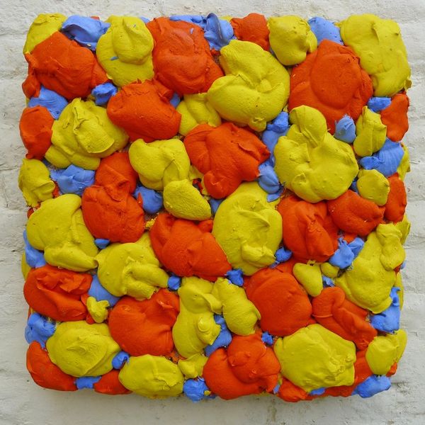 Bram Bogart created this work, titled "Geelblauw," with thick impasto paint, a technique that is as crucial to the image as its colors. Bogart, who lived from 1921 to 2012, produced this work in a period of profound change for the institutions of art. After the Second World War, artists pushed the boundaries of what could be considered art, challenging traditional artistic structures and norms. Bogart’s heavy application of paint, almost like a sculptural relief, moves painting away from illusionism and towards pure objecthood. Consider the socio-political context of post-war Europe, where artists sought new modes of expression to break from the past. Bogart’s work certainly participates in a larger cultural shift, which questioned traditional values and celebrated experimentation. Understanding "Geelblauw" requires knowledge of the cultural forces that shaped its creation. Art historical resources, such as exhibition reviews and artists' statements, can give a better sense of the social and institutional landscape that Bogart was working in.