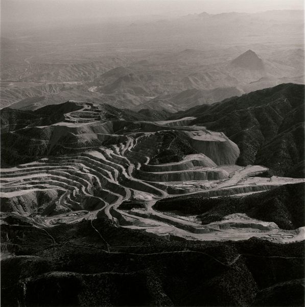 Curator: This is "Zabriskie Point, Death Valley National Monument, California," a gelatin-silver print by Ansel Adams, likely created between 1942 and 1980. Editor: Striking. It’s almost like looking at the surface of another planet, isn't it? Desolate, powerful… even a little intimidating. Curator: Adams, of course, is renowned for his technical mastery and dedication to capturing the American West. The precisionism in this image, the way he's rendered the textures and gradients of the landscape, it’s quite extraordinary. Think about the social context too, the developing national park system. These images served to promote conservation, an environmental awareness through a stark, often sublime beauty. Editor: But it's also crucial to acknowledge the politics inherent in that sublime beauty. Whose West is being celebrated, and at whose expense? We must look critically at the narratives being woven and the voices potentially silenced within them. Adams, through this environmental art, became emblematic of mid-century conservation. But we must think about whose access to these landscapes, and to this beauty, was – and remains – limited. Curator: Precisely, which makes this gelatin-silver print much more than simply a landscape study; this piece functions within broader conversations around land use, national identity, and access. This picture comes into focus within the institutional history of conservation. Editor: Absolutely, and the stark contrast and the black-and-white medium—it strips away the distractions, forcing us to confront the raw, almost brutal, geology. How do these photographic approaches become statements in themselves, particularly related to our interventions or lack thereof? The play of light and shadow makes me question concepts around vulnerability of environments as well as privilege of specific social demographics. Curator: Right, the deep blacks and radiant whites – Adams wields light as a sculptor might handle clay. The luminosity almost lends a spiritual quality to this scene, elevating it beyond a mere representation. Editor: A spiritual quality…perhaps tinged with a subtle unease, reflecting our own fraught relationship with nature and consumption? I'm moved, yet unsettled by its austerity. The artwork also challenges me to ask where do we find these sites of desolation and reflection now? Curator: Thank you, considering such reflection helps bring the work’s power into focus. Editor: My pleasure. It's essential to consider not only the artistic achievements, but also the sociopolitical framework influencing and emanating from this arresting photograph.