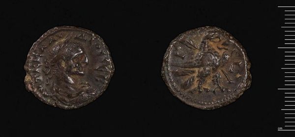 Editor: So, this is a coin from Edessa under Elagabalus. It’s small, a bit corroded, but you can still see the portrait. What strikes you about it? Curator: These coins were essentially propaganda tools. Elagabalus had a short, controversial reign. Minting coins with his image and symbols was a way to project power and legitimize his rule, even in distant provinces like Edessa. Editor: So, it's less about money and more about the message? Curator: Precisely. The choice of imagery, the style of the portrait – every detail would have been carefully considered to convey a specific message to the local population. It reflects the complex relationship between the emperor and his subjects. Editor: That’s fascinating. I’ll definitely look at ancient coins differently now. Curator: Me too; it is amazing how objects can give you an insight into the past.