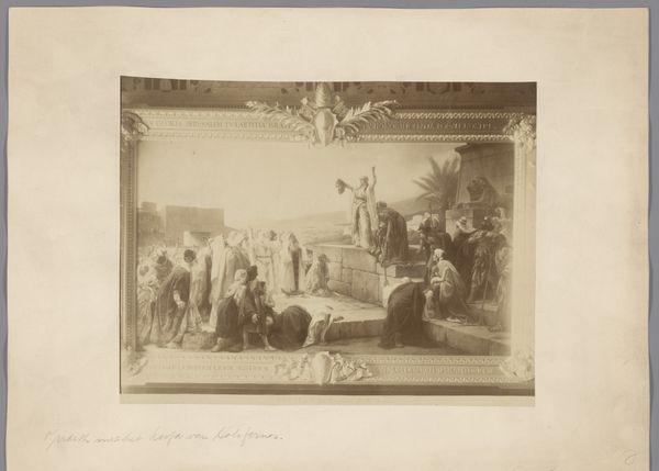 Curator: Ah, a flurry of action frozen in time. This is "Kinderen trainen honden op een erf," or "Children training dogs in a yard", dating from around 1831 and attributed to Jean-Baptiste Madou. It’s a print, relying primarily on pencil for its details, and is currently held in the Rijksmuseum. Editor: My immediate thought is chaos, beautiful chaos! Look at all those figures, children and pups, tumbling and swirling. It's got a lovely kind of frenetic energy. Like a snapshot of a memory rather than a stiff posed portrait. Curator: Yes, Madou captures that wonderful, raw energy of childhood. And it isn't just simple observation; note the building in the background. Its neoclassical architecture with its severe lines offers a stark contrast to the exuberance unfolding in the foreground. Think of what this implies – the children embodying the unconstrained freedom denied by such rigid structures. Editor: So, you’re seeing societal tension bubbling through? I love that. I was more struck by the expressions—those little faces, a mixture of determination, frustration, and pure, unadulterated joy. Like a tiny drama is playing out right before our eyes. It pulls at you, doesn't it? It makes you wonder about their lives, what stories they carry. Curator: Absolutely, and look at the repetition of certain symbols. Dogs were, and are, more than mere pets; they often symbolize loyalty, guidance, protection. The act of training the dogs may represent a larger lesson that the kids are grappling with—instilling and learning the codes, if you will, of their place in that society. Editor: Right, so a bit of "passing the torch" perhaps? The younger generation subtly shaping the future through these furry friends. The way they mimic grown-up authority is kind of amusing. Do you notice the little onlookers? It's like we are catching them mid-performance. Curator: That mirroring of adult behavior through childhood games is a poignant theme throughout much of Madou's oeuvre. But for me, what stays with me is the quiet subversiveness. Even within those formal garden walls, life, like those playful pups, refuses to be entirely contained. Editor: For me, it's that messy, unfiltered joy of childhood – the pure, unadulterated energy bursting out regardless. And who knows what grand tales those little dog trainers might spin later about their unruly pupils!