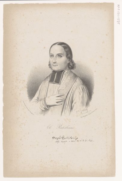 Editor: Here we have Eugène Gervais’ "Portret van Léon-François Sibour," an engraving dating between 1846 and 1880. It strikes me as rather formal, perhaps even severe in its composition. What compositional elements stand out to you? Curator: I am immediately drawn to the strategic deployment of chiaroscuro. The artist’s deft manipulation of light and shadow not only sculpts the sitter’s features, imbuing them with a sense of volume and presence, but it also contributes significantly to the overall mood of the piece. Do you notice the artist's engraving technique, the deliberate hatching and cross-hatching, and how it affects the image's texture? Editor: Yes, I see how the fine lines create depth and model the form, especially in the folds of his robe. But how much does the subject himself—Sibour and his status as an Archbishop—play into this visual language? Is the medium itself influencing how we read the subject? Curator: The medium profoundly influences our reading. The graphic precision of the engraving lends a certain authority, aligning with the sitter's ecclesiastical status. But consider how the restricted tonal range—the stark contrast between light and shadow—serves to underscore the gravitas of his position. This isn’t merely representational; it's a carefully constructed visual argument about power and piety. The crosshatching and subtle shifts in line weight grant the piece not only texture but a sense of depth—a structural sophistication that resonates with, say, the geometric precision found in contemporary architectural designs. Editor: So you see the technique itself almost enacting the formality and authority of the subject? It’s as though the engraving’s structure mirrors the subject's structured existence. I hadn't considered the engraving's graphic elements contributing so deliberately to the impression the artwork gives off. Curator: Precisely. By concentrating on these formal devices, we unearth the structural supports that bear the image’s broader significance. What are your impressions now?