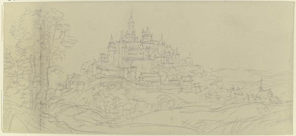 This is Karl Ballenberger's "View of the Kapuzinerberg in Salzburg," a delicate pencil drawing now residing in the Städel Museum. The drawing’s pale tonality and light touch create a sense of distance, both physical and temporal. The composition is structured around a series of horizontal layers – the foreground hinting at the city, the midground dominated by the hill and its architectural features, and the background fading into the sky. Ballenberger uses linear perspective to guide the eye, but the softness of the pencil lines blurs the precision, lending an atmospheric quality to the scene. The marks almost dissolve into the paper, creating a dialogue between presence and absence, solidity and ethereality. This subtle interplay challenges the traditional function of landscape art, which invites reflection on how the natural and built environments intersect. The drawing presents a structural framework that allows us to consider how meaning is constructed through visual form. The careful arrangement of lines and spaces underscores a deeper cultural engagement, where the act of seeing becomes an act of interpretation.