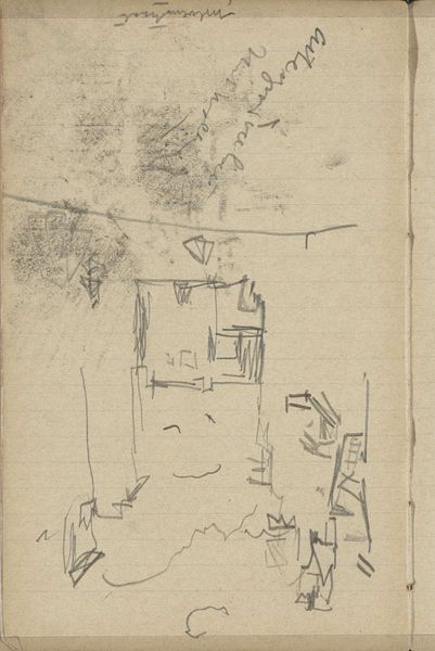 Curator: Here we have a cityscape sketch attributed to George Hendrik Breitner, tentatively titled "Stadsgezicht, mogelijk Amsterdam," dating from around 1889 to 1904. It’s a pencil drawing on paper currently held in the Rijksmuseum collection. Editor: Amsterdam, huh? It has that wistful, blurry quality like remembering a place half-dreamt. The muted tones almost drain the vibrancy out, like a half-erased memory. Curator: The apparent simplicity of Breitner's method – light pencil strokes on toned paper – belies a carefully constructed image. It seems as though this page was lifted directly from the artist's personal sketchbook, maybe capturing an initial idea. The visible structures are typical of Amsterdam's canalside architecture of the time. Editor: You can see it's just a starting point though. He’s captured just enough to evoke the sense of tall buildings and perhaps the rigging of ships… but he’s left it open. It's this "incomplete" nature of this that's appealing, like glimpsing something unfinished. I mean, there is definitely space for the soul to wander. It has such an intriguing openness. Curator: Yes, and consider the function of sketches during this period. They served less as finished artworks themselves and more as reference materials to capture a moment, or explore light effects and atmospheric qualities on location for future studio paintings. This immediacy makes sketches extremely compelling for us as viewers. Editor: True. So the beauty comes from it’s spontaneous feel - his eye on paper, unfiltered. It makes me think about our fleeting experiences in cities; how we grab impressions on the go. Curator: Precisely. There's a certain humility too, a directness… no grand statement is attempted here, just pure observation. You feel a direct link to the artist at work, decades ago. It connects on a visceral, human level. Editor: Absolutely, the human element resonates through his quick strokes. I think Breitner’s captured something essentially intangible with such simple materials. It might be more honest than a photograph. Curator: An honest rendering, a captured impression... and a record, of course, a symbol of place and time, interpreted through the lens of Breitner's distinct visual style. Editor: Well, I for one am very glad he grabbed his pencil. It gives a wonderful opportunity to imagine what this fragment of Amsterdam used to be.
