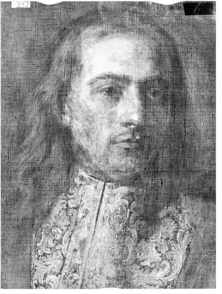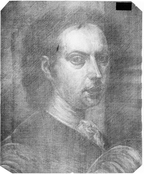 Curator: This is an X-radiograph of "Alessandro Farnese," attributed to Domenico Tintoretto, part of the Harvard Art Museums collection. The film itself measures 14 x 17. Editor: It’s like a ghostly image emerging from the deep. You can almost feel the weight of history, yet it feels so fragile. Curator: X-radiography allows us to see beneath the surface, revealing the artist's process, changes in composition, and the materials used. The Farnese family held significant power in Renaissance Italy. Editor: Knowing that adds another layer, doesn't it? It's not just a portrait, but a glimpse into dynastic politics, power, and the person behind the image. It prompts a deeper reflection on legacy and representation. Curator: Indeed. It's a reminder of the complex interplay between art, power, and historical context. Editor: Absolutely. Art as a witness, technology as a revealer. Intriguing!