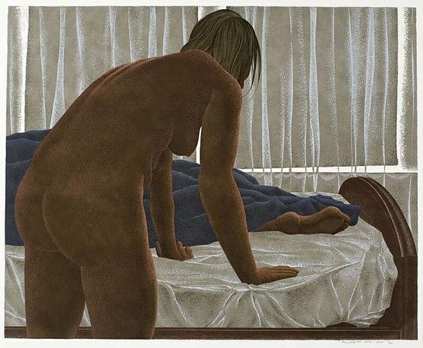 Alex Colville made ‘Snow’ with what looks like meticulous care and a very specific colour palette, a kind of muted, earthy tone. What’s interesting about the piece is the texture. It feels almost as if he's built up the image dot by dot, creating a stippled effect that gives the skin and the room this tactile quality, like you could reach out and feel the roughness of the surface. The light is diffused and cool, giving this image a dreamlike feel, yet the scene is intimate. Look closely at how the woman's back is rendered, notice the subtle shading that suggests the curve of her spine. It's almost like he’s mapping out the terrain of the body. Colville reminds me a little of Edward Hopper, but with a more intimate and personal touch. There's this stillness, this quiet observation of everyday life, but with a deeper emotional resonance. He reminds us that art doesn't always need to shout, sometimes the most profound things are said in a whisper.