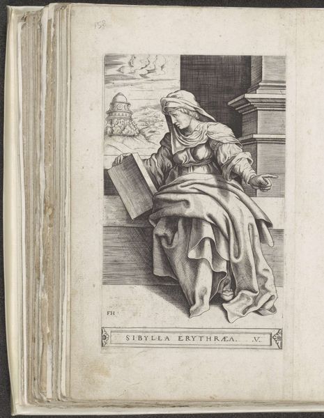 Editor: This is Geertruydt Roghman's engraving, "A Young Woman Ruffling," from "Five Feminine Occupations," dating from the mid-17th century. It feels… intimate, but also unsettling. There’s a quiet domestic scene disrupted by a skull at the woman's feet. What do you see in this piece? Curator: Indeed. The domesticity is a carefully constructed illusion. Notice the woman absorbed in her sewing, juxtaposed with the skull resting on what appears to be a scroll. What meaning does the symbol of the skull carry, do you think? Editor: It’s hard to ignore; it's the classic "memento mori," reminding us of mortality. Curator: Precisely! The Vanitas symbolism speaks volumes. Think of the transience of beauty, of earthly endeavors in contrast with the inevitability of death. How does that impact your understanding of the central figure's actions? Editor: It suggests a futility, perhaps. She’s creating something delicate and beautiful, but death overshadows her work, as if questioning its purpose. Is that what you see? Curator: Yes, but look closer at the objects surrounding her. The clock, the books... each whispers of time, knowledge, and, ultimately, their limits. The beam of light can also be seen as divine judgment. The artist seems to want the viewer to reflect on mortality and how this impacts the choices we make in life. It's quite moving. Editor: It’s amazing how Roghman uses everyday objects to convey such profound philosophical ideas. I hadn’t considered the cultural weight of these symbols until now. Curator: Each carefully placed detail encourages contemplation and self-examination. The image invites us to ponder how we might live with death constantly present in our awareness. Editor: That's certainly a sobering thought, but incredibly powerful too. Thanks for shedding light on the historical and symbolic meanings embedded in the work.