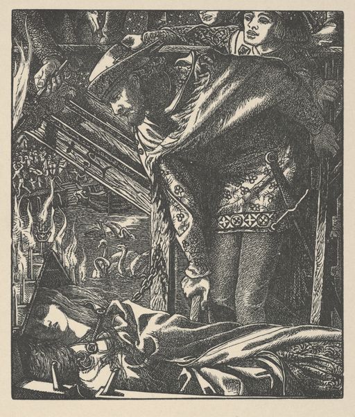 Curator: My initial reaction? Nightmarish. This section of Matthias Grünewald’s “The Temptation of St. Anthony," painted around 1516, feels overwhelmingly chaotic. The distortions! Editor: Grünewald was hardly alone in portraying St. Anthony’s trials. This theme resonated profoundly in an era grappling with societal anxieties and religious fervor, particularly in regions impacted by the plague and ergotism—what some think was "St. Anthony’s Fire." Curator: Fire indeed! I'm seeing these grotesque figures… Their distorted bodies seem to writhe in agony. What visual language is he speaking? It's all so unnerving! Editor: Symbolically, the grotesque figures embody spiritual and physical afflictions. Grünewald draws upon familiar iconographic motifs of demons as physical manifestations of inner torment and temptation. He understood the power of visual horror. Curator: Absolutely. Consider, too, that this piece resided within the Isenheim Altarpiece, originally housed in a hospital. So, patients would have been faced with this. Its visual power meant to both terrify and offer a potent message. Editor: Ah, precisely. The intended audience matters. The grotesque imagery, rather than merely frightening, offers a visual conduit for their own suffering. By facing such horror, sufferers find empathy in Saint Anthony’s own plight and therefore a symbol of strength. Note how the illness is written across the skin in so many places. Curator: It's almost… performative, a dramatic staging of human suffering under pressure, wouldn't you agree? You said ergotism earlier: what is remarkable here is how the body manifests the mental. Editor: In total agreement. Look at Saint Anthony’s face. A picture of exhausted fortitude that would resonate even now. To reflect on Grünewald is to consider both a terrifying representation of his moment, and also ours. Curator: It feels deeply relevant—the timeless quality of inner battles projected outward, visualized for the masses, hasn’t gone anywhere. And this brings with it great hope.