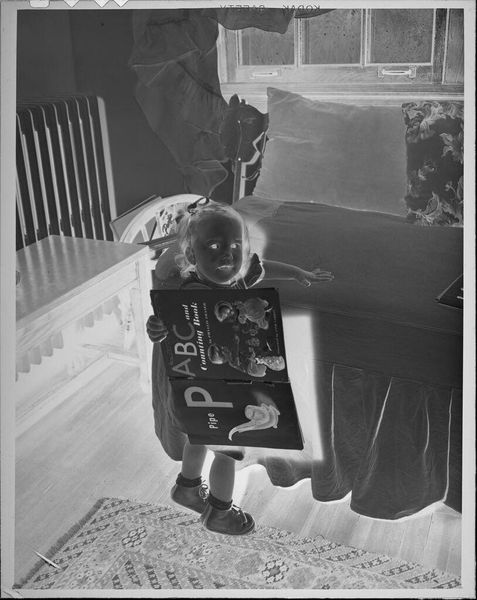 Editor: This photograph, simply titled "Untitled (girl performing puppet show in homemade theater)" by Lucian and Mary Brown, shows a girl absorbed in her performance. What strikes me is the homemade quality of the theater itself. What do you see in this image? Curator: It speaks volumes about the democratization of art and entertainment. This image captures a moment of personal creativity thriving outside established institutions. The girl's agency in creating her own theater, her own narratives, challenges the traditional art world's gatekeeping. Editor: That's fascinating! So, you're saying the photo's power lies in its portrayal of art being accessible and self-made? Curator: Precisely! It's a powerful statement on art's potential to be a grassroots phenomenon, shaped by individual imagination and resourcefulness, rather than dictated by established norms. Editor: I never considered it that way. It's more than just a charming image; it’s about accessibility and challenging norms. Thanks! Curator: My pleasure! It is a reminder that art's value isn't solely determined by its market price or museum placement, but by its cultural impact and the stories it tells about human experience.