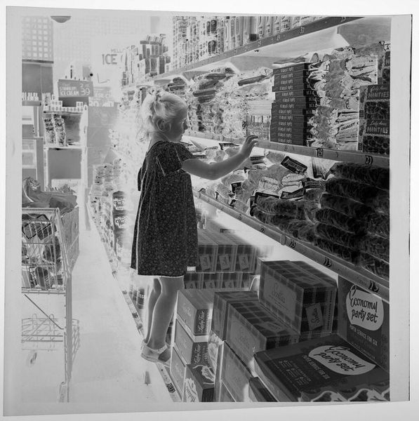 Curator: This small gelatin silver print, currently titled "Untitled (woman in long coat walking outside on cold day)," is by the photographer Jack Gould. Editor: Brrr! It makes me shiver just looking at it. The woman's outfit, the starkness, there's a real chill. Curator: Indeed, and the image, in its inverted state, presents an interesting lens through which we might consider themes of alienation and visibility within urban landscapes. Editor: I wonder what she's thinking, or maybe where she's rushing to? It’s almost a dreamlike, fleeting moment captured in monochrome. I feel like I'm eavesdropping on her private narrative. Curator: Perhaps, and that narrative might speak to broader socio-political anxieties concerning women’s roles and representation in public life during the mid-20th century. Editor: Right, the power of suggestion, leaving a space for the viewer to fill in the blanks. I like that, Jack. Curator: A powerful piece, definitely worth further exploration. Editor: Absolutely, it sticks with you.