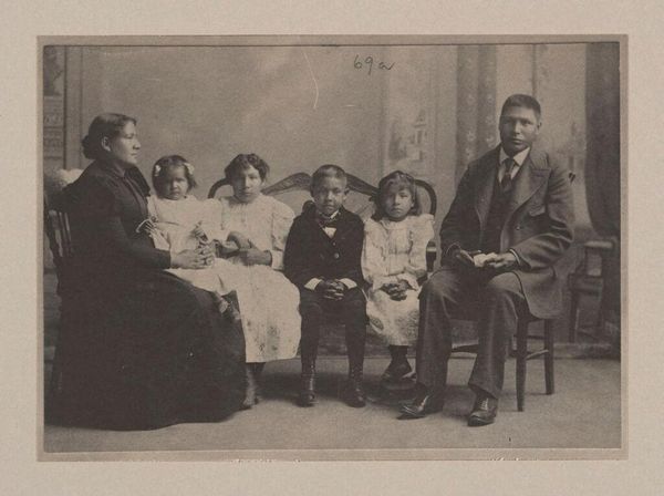 This is a photograph of five young women, including members of the Geertsema family, taken in the studio of Henk van den Berg. Group portraits like this one, produced in the Netherlands, offered families a way to publicly display their status and kinship networks. In a time when social mobility was increasingly determined by economic success, the Geertsema family likely commissioned this photo to assert their place in society. The studio setting, with its draped backdrop, was a common trope that signaled the formality of the occasion. Consider the subtle messages conveyed through the women’s clothing and poses, which speak to the values of the time. Such signifiers provide rich material for historians to analyze and interpret. Through careful examination of photographic archives, family records, and studio ledgers, we can begin to understand how images like this one participated in the construction of social identity in the late 19th and early 20th centuries.
