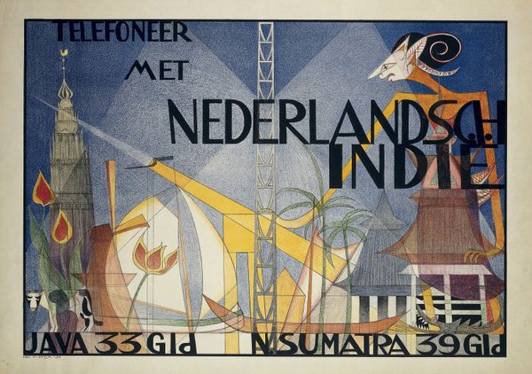 This is a cover of a booklet titled "The German Exploitation of the Netherlands in Figures and Facts" by the Ministry of Commerce and Industry. It’s an image dominated by flat shapes in a restricted palette of black, red, yellow and green. What grabs me is the black rake, which cuts across the image, contrasting with a green landmass covered in numbers. It’s a powerful metaphor, isn’t it? This rake, a tool for gathering, becomes an instrument of extraction and oppression. The image teeters between abstraction and representation. The map isn’t quite a map, but more like an idea of one, filled with the cold, hard data that signifies economic exploitation. The yellow streak coming from the rake is not quite sun but the potential wealth removed from the land. This stark, graphic style speaks to the political climate of the time, not unlike some of the WPA posters from the USA, but with a more European sensibility. You can feel the urgent need to communicate a clear, unambiguous message, to make visible the invisible forces at play.