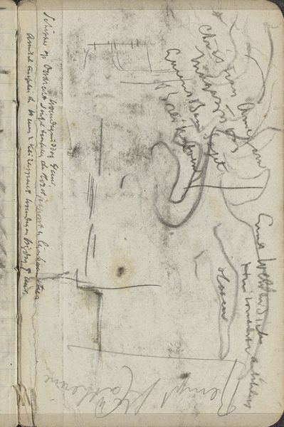 Curator: This page from Antoon Derkinderen’s sketchbook, likely dating from between 1892 and 1901, offers a glimpse into his process of designing civic heraldry using ink on paper. It feels immediate, raw, like a direct connection to the artist’s thought process. What stands out to you? Editor: It’s fascinating to see these heraldic sketches – the lions, the horseshoes – in such a raw form. The handwritten notes scrawled across the page suggest so much about their development, about their purpose, even if only hinted at. What’s your perspective on these sketches? Curator: Well, let’s consider the materiality here. The cheapness of the paper and ink suggest a readily available medium for artistic labor. This wasn’t meant for display as high art, but rather as a functional step in the production of something else – an emblem representing civic identity. Does that cheap paper negate any potential value? Editor: No, I see it the other way. The ephemeral nature of the sketch reveals its true value. Derkinderen likely chose these materials to democratize art making, breaking away from formal commissions to offer something accessible to a broader population through printed emblems and flags. What sort of craftmanship details do you find important? Curator: Consider the social context. Late 19th-century Netherlands witnessed a rising sense of national identity, manifested through civic symbols like these. This drawing documents the artistic labor involved in manufacturing that identity through emblems meant to represent people through heraldry in readily mass-produced products like municipal letterheads and signage. It blurs the line between the "high art" of drawing and the "low art" of printing. So much thought and intent are behind these sketches. Editor: That really shifts my understanding. Seeing the materials as a deliberate choice to engage with labor and national identity adds a whole new layer. It makes me think about the hidden work behind every civic symbol. Curator: Precisely. It challenges us to look beyond aesthetic appeal and to examine the means of production. It’s fascinating how something as simple as ink on paper can tell such a complex story. Editor: I agree. This discussion has changed my appreciation for the piece – understanding how materials and process create the means for a broader representation in more widely spread and utilized symbols, like flags, is key to appreciate this form of artistic expression.