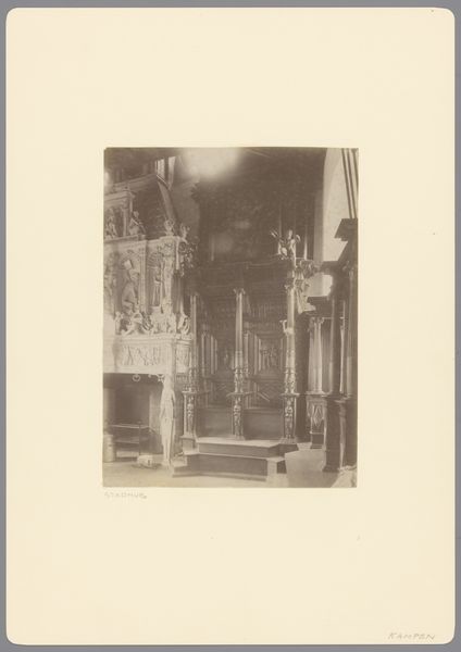 This photograph shows the Schoorsteen in het stadhuis van Kampen, the chimney in Kampen’s town hall. It was taken by an anonymous photographer for Monumentenzorg, which translates to ‘care of monuments’. I’m taken by the soft tonality of the image, which mutes the details into something abstract. It’s almost like a charcoal rubbing. When I’m making art I find that the actual moving around, the putting down of colour, creates its own logic, a sense of something emerging. The chimney is so elaborate, a whole history in stone, and the figures are like ghostly sentinels. The texture is the thing I find most fascinating here: the grainy quality of the photograph itself seems to mimic the texture of the stone. You can almost feel the cool surface and the marks left by the sculptor's tools. It is the way the photograph captures the surface of the chimney that makes this photograph sing. Thinking about other artists who deal with the surface, maybe Cy Twombly would have loved this image. Art, like life, is an ongoing conversation, and this photo has plenty to say.