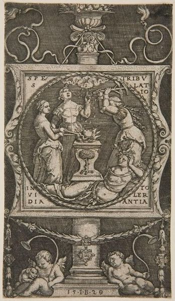 This print, titled "The Forge of the Heart," was made anonymously, sometime around 1529. The artist used the intaglio process, meticulously incising lines into a copper plate, which was then inked and pressed onto paper. The resulting image is full of allegorical figures enacting a symbolic transformation. The material of the print, its stark black lines on a white ground, lends itself well to the themes of labor and purification presented in the work. See how the figures actively engage in altering the heart, using tools and fire. This reflects the period’s emphasis on human agency and moral improvement. The intaglio process itself demands immense patience and skill, mirroring the effort required for personal transformation. The print, as a multiple, also speaks to the wider distribution of knowledge during the Renaissance, and the rise of a print culture. Appreciating this artwork means understanding not only its symbolism but also the labor and context that gave it form.