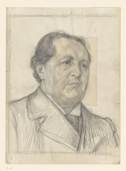 Editor: Here we have Jan Veth’s portrait of Charles Boissevain, made sometime between 1874 and 1925. It's a pencil drawing on paper, currently residing at the Rijksmuseum. It feels like a very intimate, almost like a stolen glance at a prominent figure. How do you read this piece, in terms of its historical moment? Curator: That's a wonderful initial response. The "stolen glance" aspect hints at the complex power dynamics inherent in portraiture of that era. Boissevain was a very influential journalist and editor during a time of significant social and political upheaval in the Netherlands. How does knowing this information impact your understanding? Editor: It definitely shifts my perspective. Knowing he was a powerful figure, the portrait seems less about intimacy and more about capturing a sense of his authority. There's a reserved quality, even a certain guardedness in his expression. Curator: Exactly! Think about the role of the press during that period. Boissevain’s writings would have shaped public opinion on issues ranging from colonialism to class conflict. Does Veth’s seemingly straightforward portrait subtly reinforce or perhaps challenge those existing power structures? What visual cues make you say so? Editor: Well, his gaze is averted, but his features are sharp. The artist uses tight line work which conveys that sense of intellect and rigor. This contrasts the man’s kind features, particularly around his eyes. Curator: Precisely. The seemingly simple act of portraying an individual becomes a negotiation, a dialogue, between artist, sitter, and audience, laden with societal expectations and potentially subversive undertones. Considering issues around race and gender, how might Boissevain’s position have influenced or been influenced by the existing dominant narratives? Editor: It’s fascinating to consider the social and political currents running beneath what seems like a simple drawing. I'm seeing this portrait in a whole new light now! Curator: And I'm seeing how this artwork sparks questions on individual identity in relationship to power structures. Thanks for this dialogue.