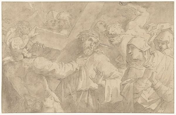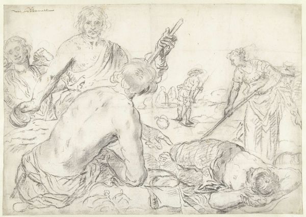 Abraham Bloemaert made this drawing, using pen and brown ink, sometime in the 17th century. It's not just a picture, it's a record of a way of seeing and a method of production. The pen strokes aren't just lines; they are traces of Bloemaert's hand, moving across the paper, building up the image bit by bit. Look closely and you can see how he used hatching and cross-hatching to create areas of shadow, lending a three-dimensional quality to the figures. The brown ink gives a warmth and depth to the drawing that a pencil sketch simply couldn't achieve. The fluidity of the ink allowed Bloemaert to capture a sense of movement and spontaneity, freezing a moment in time. The quick, confident strokes suggest that this might have been a preparatory sketch, a way for the artist to work out his ideas before committing them to a larger, more finished work. But in its very incompleteness, the drawing invites us to imagine the possibilities, to participate in the creative process. It reminds us that art is not just about the final product, but about the journey of making.