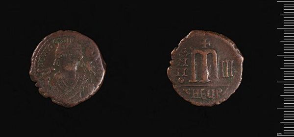 Curator: Here we have a Follis of Justin II, a coin crafted in Constantinople. The very act of minting currency speaks volumes about the centralization of power. Editor: The bas-relief has eroded over time, which lends it a sense of mystery. It's like a hidden symbolic language worn smooth with age. Curator: Absolutely. These weren't just monetary objects; they were tools of imperial propaganda. Distributing these coins meant circulating the emperor's image and authority. Editor: The rough, asymmetrical edges, create this interesting play between decay and durability, almost like a memento mori. Curator: In its time, this coin was a powerful tool of statecraft. Now it's a reminder of just how much has changed. Editor: Indeed, and yet it also evokes a sense of timelessness, a link to something greater than ourselves.