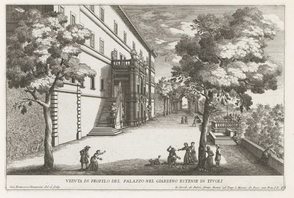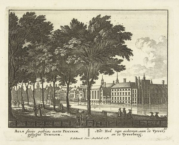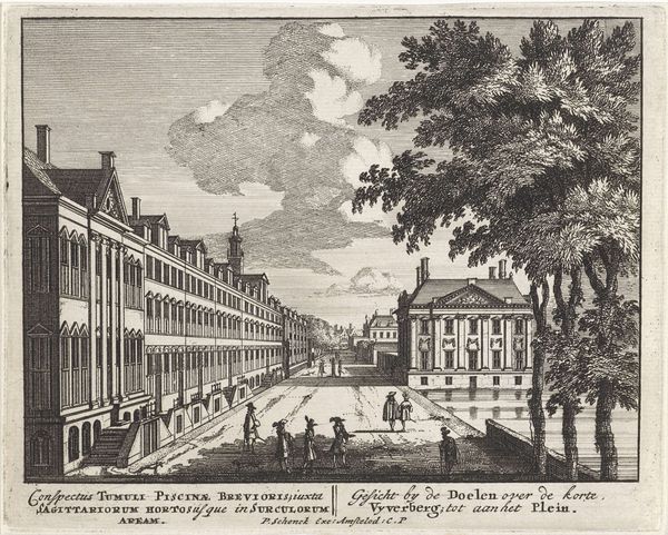 Editor: This engraving, "Gezicht op de Lange Poten en het Plein te Den Haag," whose creator is listed as anonymous, dates to sometime between 1686 and 1711. It's incredibly detailed; I'm struck by how this print medium can still evoke the stillness of a serene afternoon. What stands out to you in this particular piece? Curator: What grabs my attention is how this print highlights the *process* of urbanization. Think about the labor involved: the engraver meticulously carving into the metal plate, the paper-making process itself. The image depicts an ordered, almost sterile environment. Who benefits from this controlled representation? Is it a celebration of the rising merchant class, perhaps subtly advertising a desirable lifestyle built on consumption and colonial extraction? Editor: Consumption? How do you read that in a cityscape? Curator: Consider what's absent. Are there vendors or signs of labour openly visible? The figures in the foreground seem leisurely – consumers rather than producers. The meticulous detail, especially in the architecture, screams affluence. We need to examine how this image actively constructs a vision of Dutch prosperity and civility. What is shown versus what is *not* shown becomes extremely relevant when exploring the context of labour and materials. Editor: I see your point. The *lack* of visible labor sort of… reinforces the comfortable lifestyle. It’s a very curated picture. Curator: Precisely. And the very *means* of its production, the print medium, makes it easily reproducible, expanding the circulation of this idealized vision, and contributing to the cycle of production and consumption on a societal scale. It’s all interconnected. Editor: That changes how I view the engraving. I will certainly look at it through that lens now! Thanks for sharing these novel thoughts.